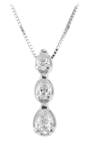 Buy 14k White Gold, 3-Stone, Teardrop Pendant (1/2 cttw, I Color, I1 Clarity) Now