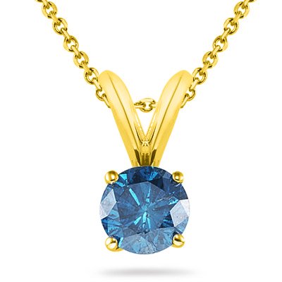 Buy 14K Yellow Gold Round Blue Diamond Solitaire Pendant w/18 Inch Chain (1/3 ctw) Now