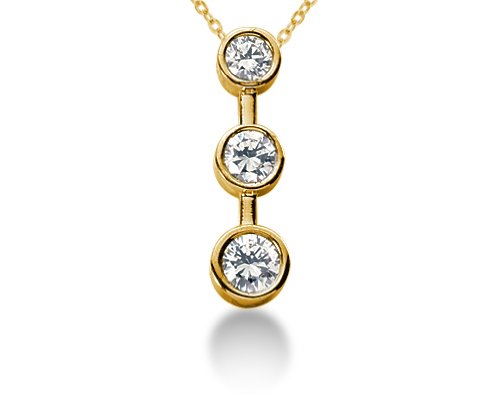 See more technical detailsBuy 1.00CTW Bezel Set Three Stone Diamond Pendant in 18k Yellow Gold Now