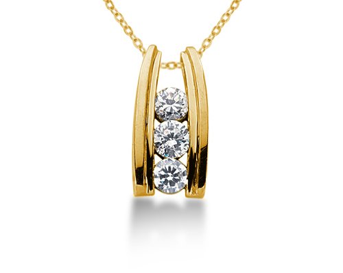 See more technical detailsBuy 1.00CTW Bar Set Diamond Three Stone Pendant in 18k Yellow Gold Now