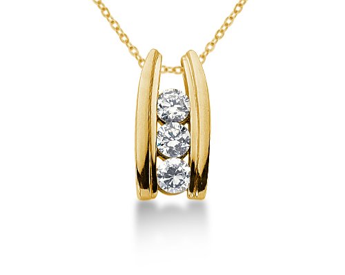 See more technical detailsBuy 0.80CTW Bar Set Diamond Three Stone Pendant in 14k Yellow Gold Now